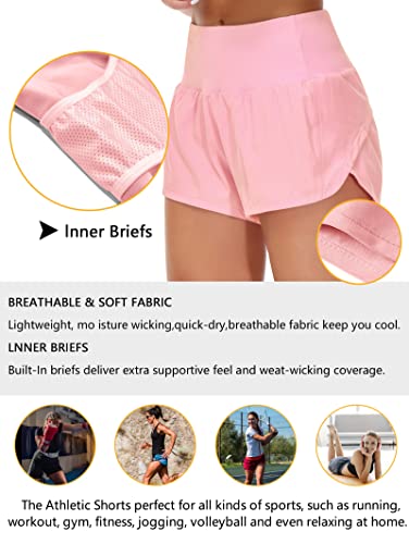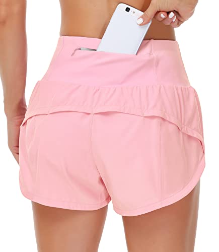 Origiwish Women’s High Waisted Running Shorts with Liner Quick Dry Athletic Workout Shorts Zipper Pockets