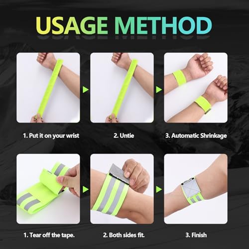 【COMFORTABLE & ADJUSTABLE & SIMPLE】With the selected elastic fabric and silver reflective material, reflective bands are perfect for arm, wrist, ankle and leg, easy to use and no batteries required. Perfect for your outdoor activities.